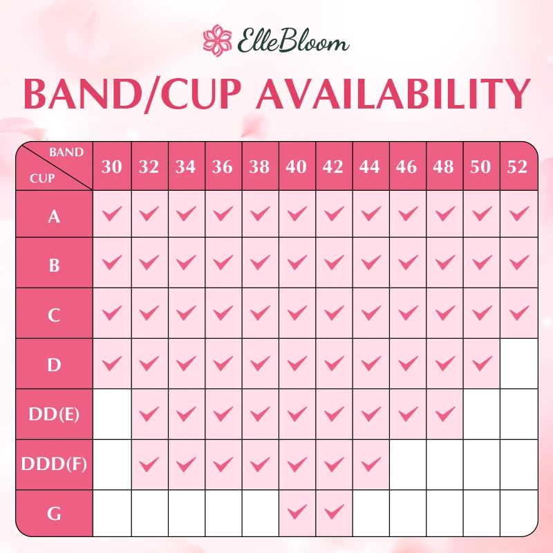 ElleBloom features widened straps, under band, sideband and 5D cups with built-in lifting mesh, providing all-around support. Say goodbye to sagging and enjoy a flattering fit.